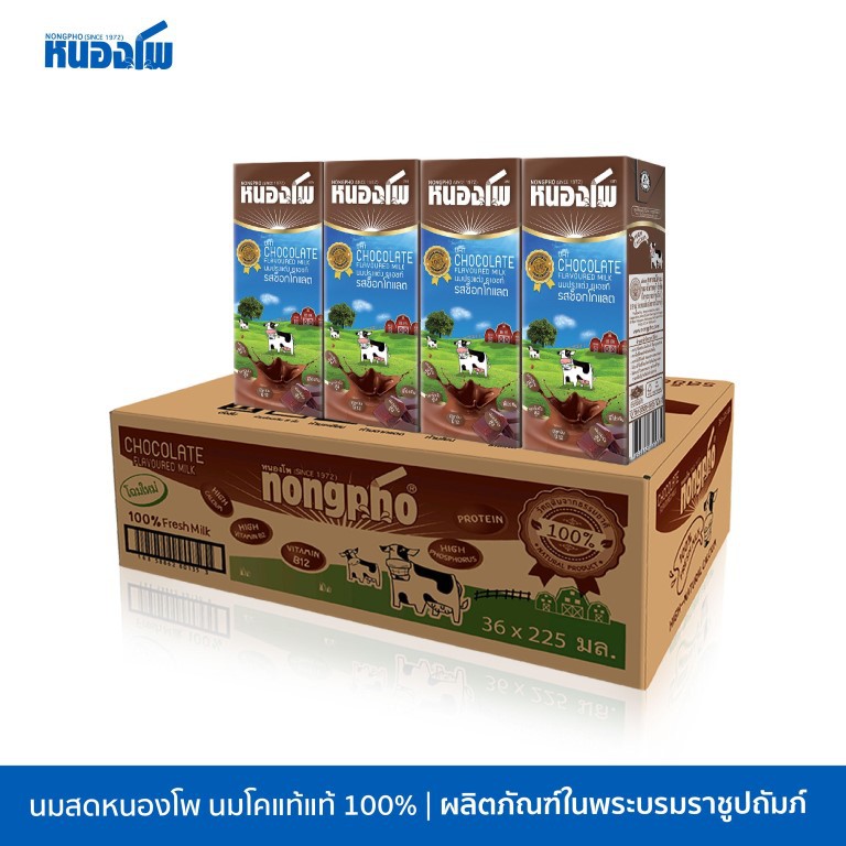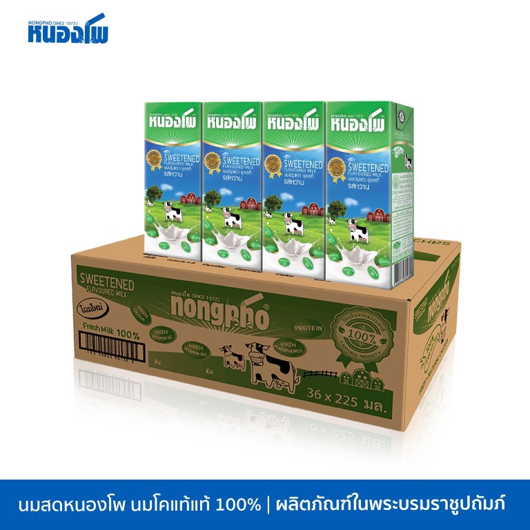Nongpho นมหนองโพ ยูเอชที 225 มล. (แพ็ค 4) (เลือกรสได้)