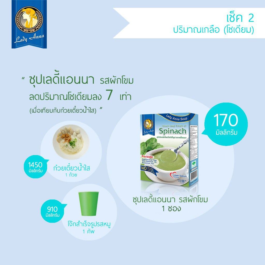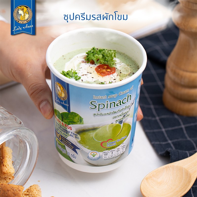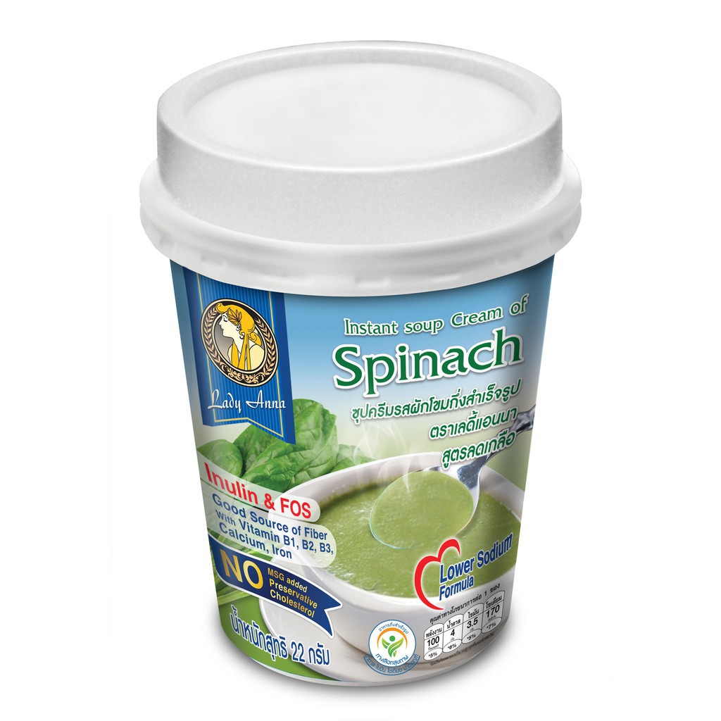 Lady Anna ซุปครีมกึ่งสำเร็จรูป รสผักโขม สูตรลดเกลือ แบบถ้วย 22g.