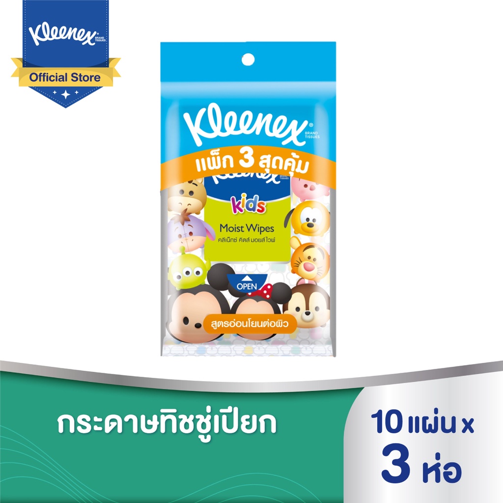 คลีเน็กซ์ กระดาษทิชชู่เปียก คิดส์ แอนตี้แบคทีเรียล ไวพ์ 10แผ่น แพ็ค3ชิ้น Kleenex Kids Antibacterial Wipes
