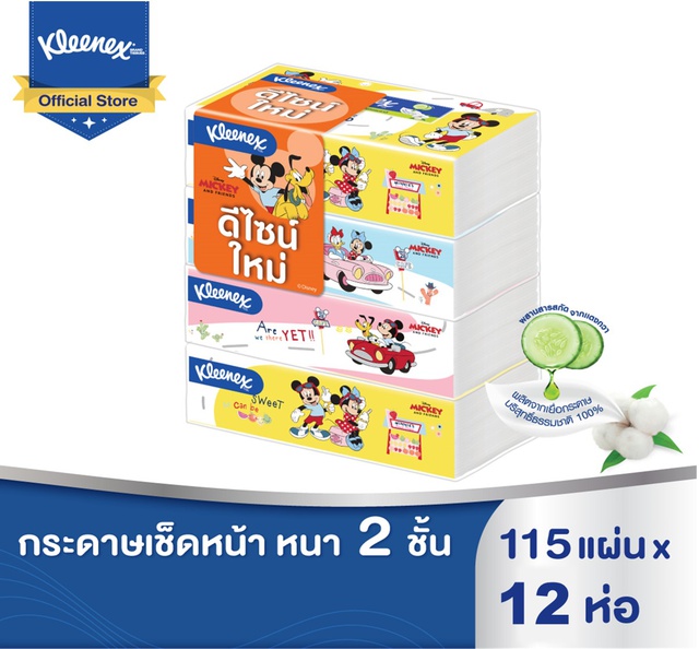 คลีเน็กซ์ กระดาษเช็ดหน้าหนา2ชั้น ลายดีสนีย์ 115แผ่น 4x3แพ็ค รวม12ห่อ Kleenex Facial Tissue Disney SoftBox 4x3(12Packs)