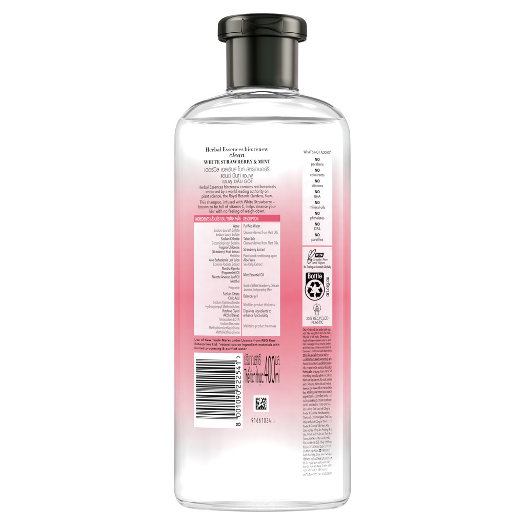 [ใหม่] Herbal Essences เฮอร์บัลเอสเซนส์คลีนไวท์สตรอเบอรี่ & สวีท มินท์ 400 มล. [Vegan / Paraben & Silicone Free]