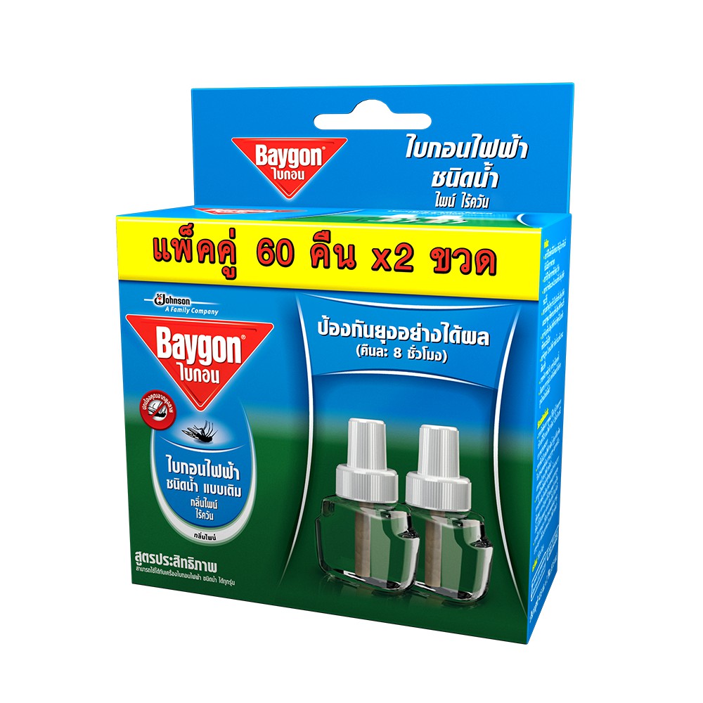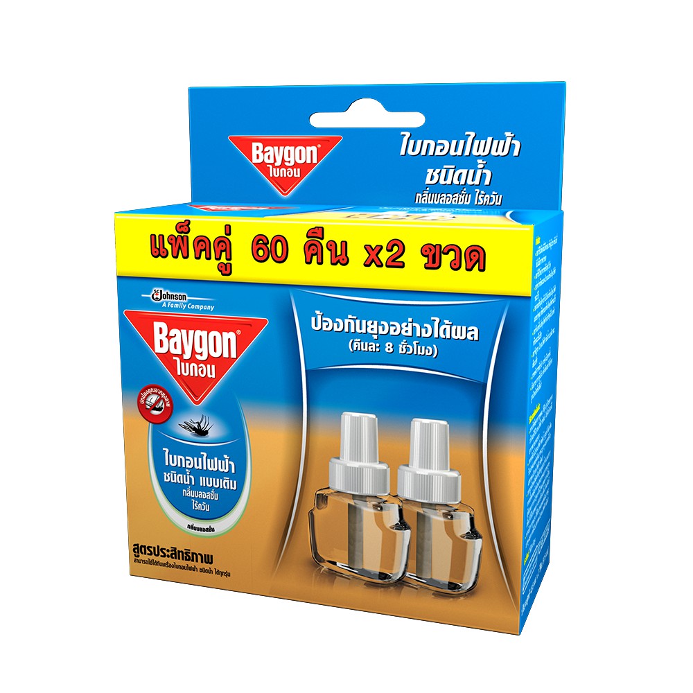 [ขายดี] Baygon ไบกอนไฟฟ้าชนิดน้ำ แบบเติม 60 คืน (แพ็ค2): เลือกกลิ่นได้