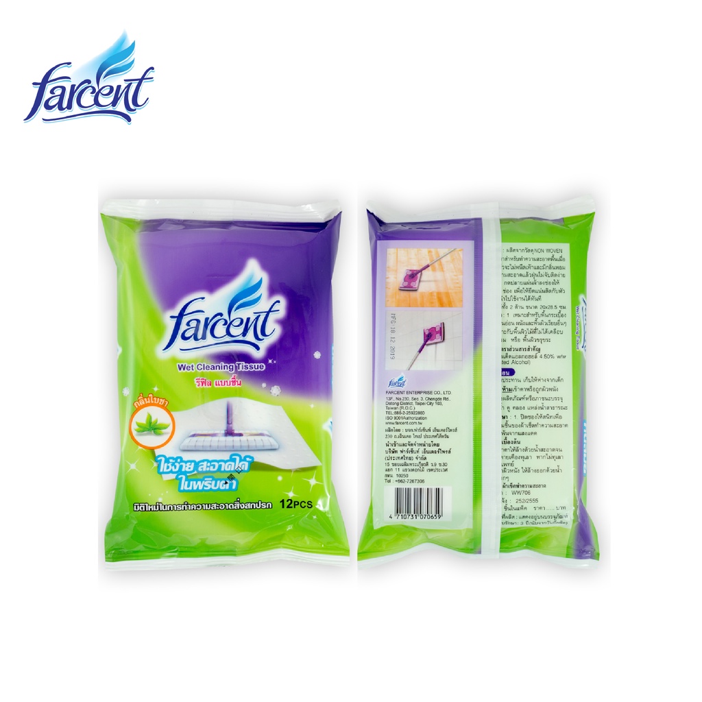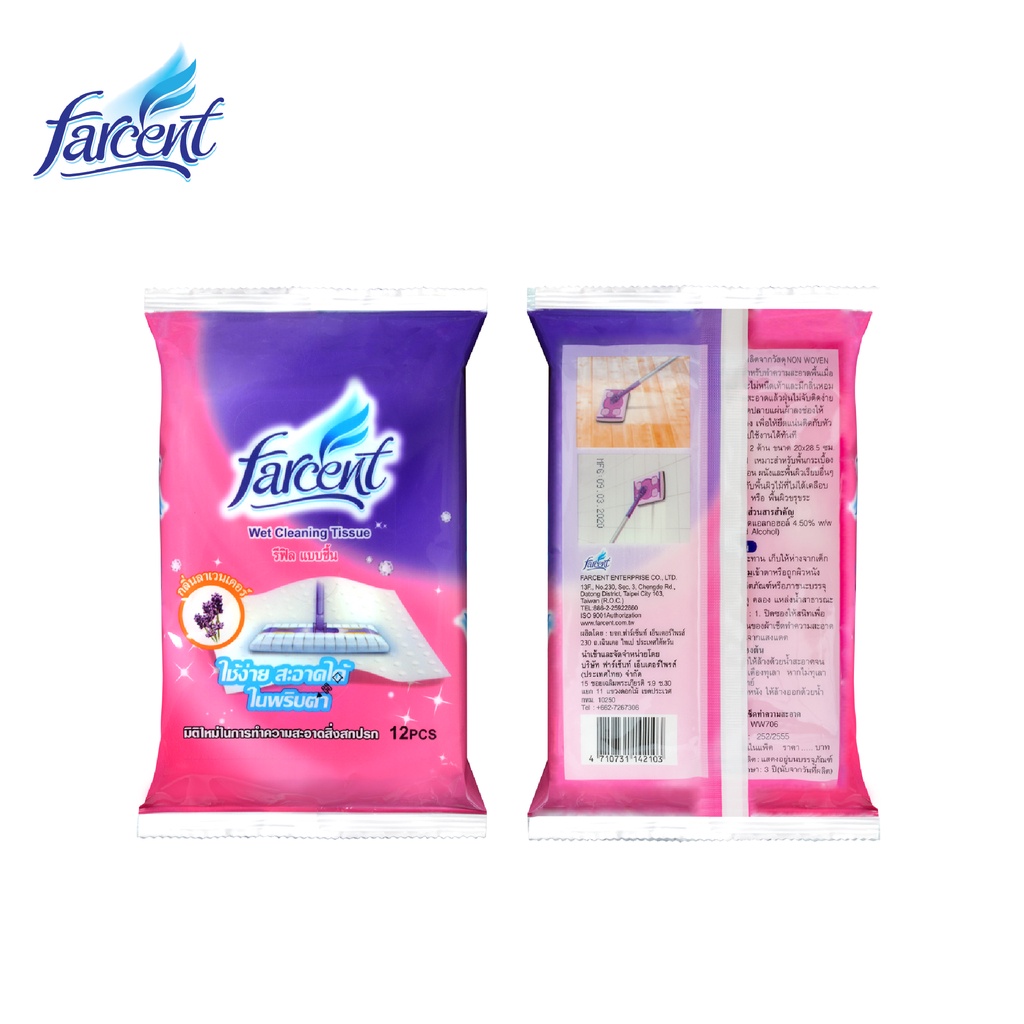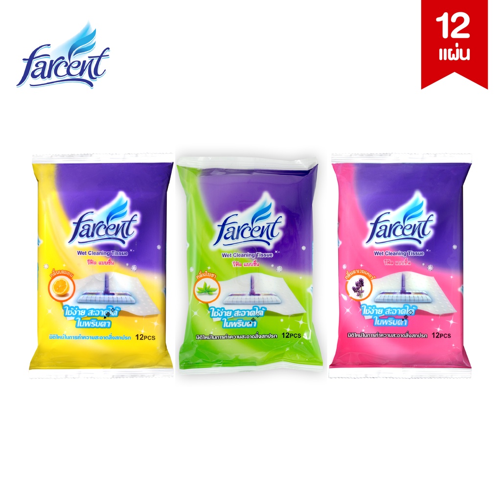Farcent รีฟิลไม้ถูพื้นไฟฟ้าสถิตย์ แบบชื้น 12 แผ่น