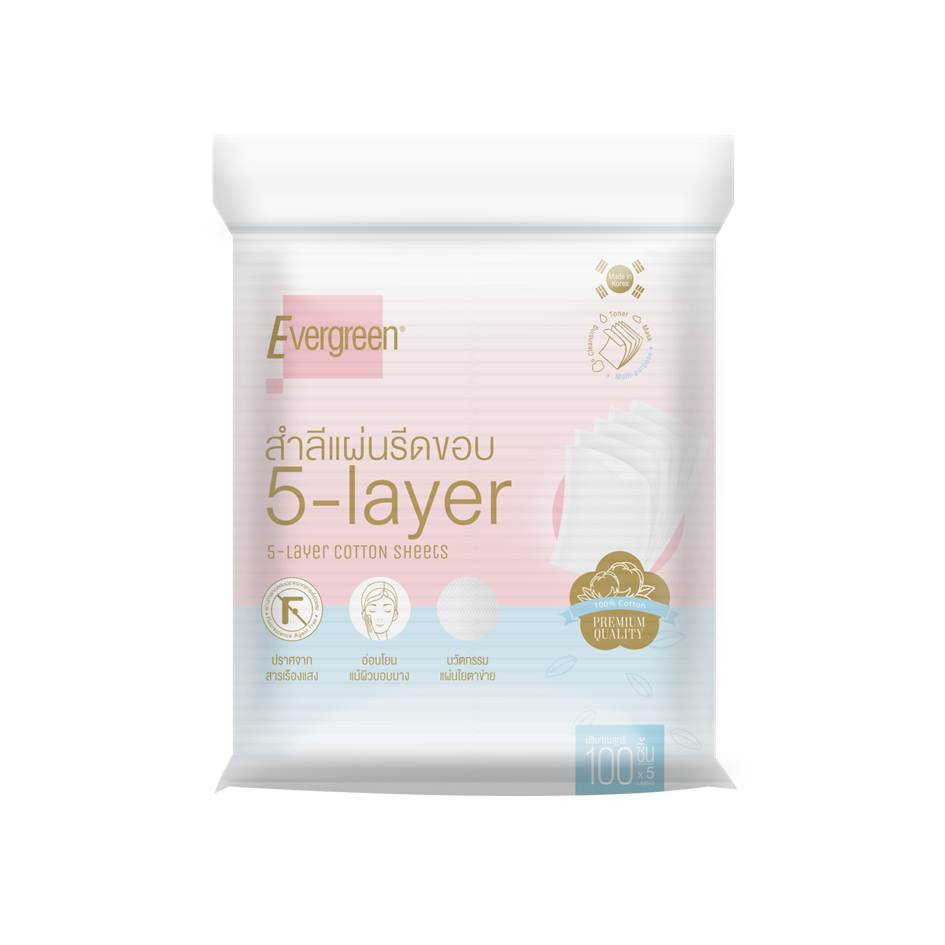 Evergreen เอเวอร์กรีน สำลีแผ่นรีดขอบ 5 เลเยอร์ 100 แผ่น