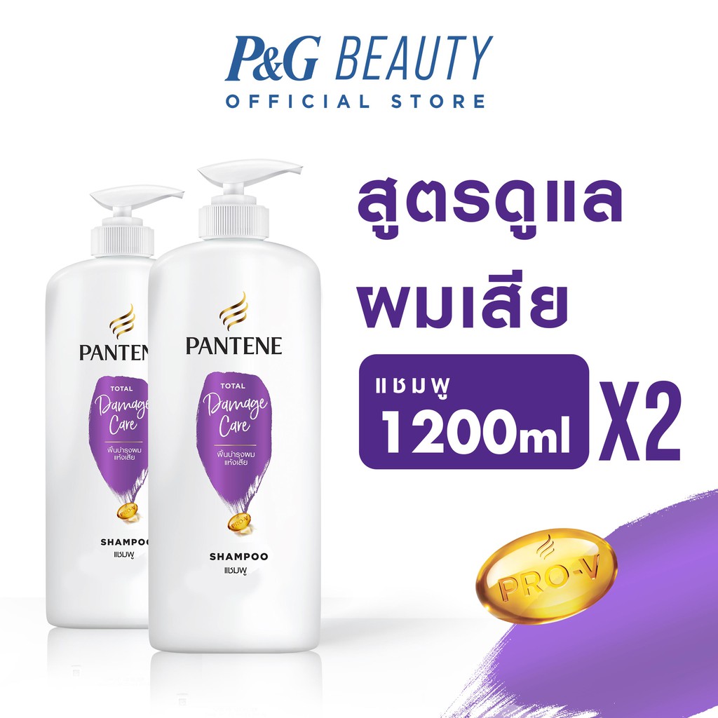 Pantene แพนทีน โปร-วี แชมพู สูตรฟื้นบำรุงผมแห้งเสีย 1.2 ลิตร X2 ขวด แพ็คสุดคุ้ม Total Damage Care Pro-V Shampoo1.2