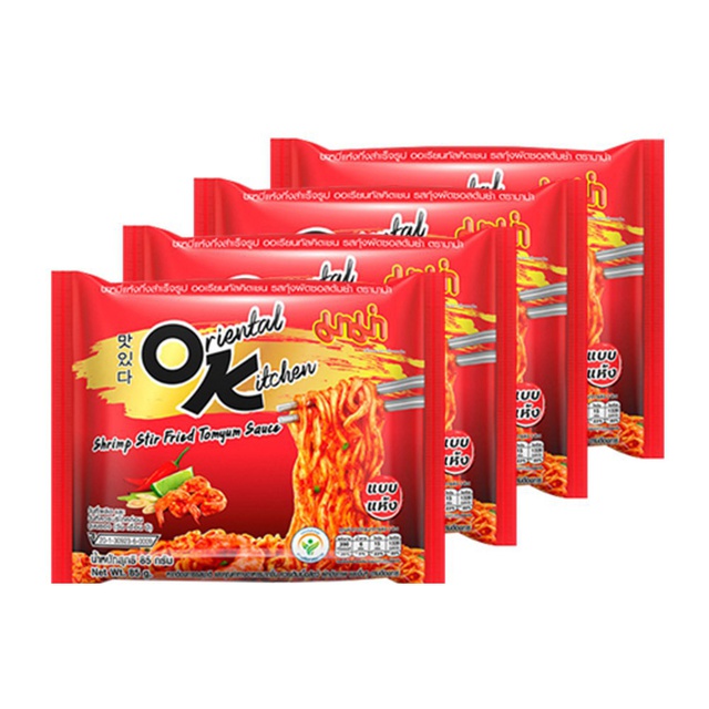 Oriental Kitchen มาม่าออเรียนทัลคิตเชน บะหมี่แห้งกึ่งสำเร็จรูป รสกุ้งผัดซอสต้มยำ 85กรัมX(แพ็ค 4)