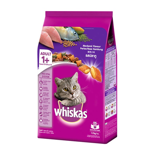 วิสกัส อาหารแมวชนิดแห้ง แบบเม็ด พ็อกเกต สูตรแมวโต 1.2กก 1 ถุง รสปลาทู