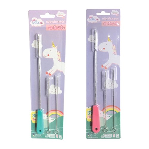 Grace Kids เกรซคิดส์แปรงล้างหลอด เซต 3 ชิ้น สีฟ้า,ชมพู