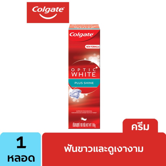 Colgate ยาสีฟัน คอลเกต อ๊อฟติค ไวท์ พลัส ชายน์ ยาสีฟันเพื่อฟันขาว 100 กรัม