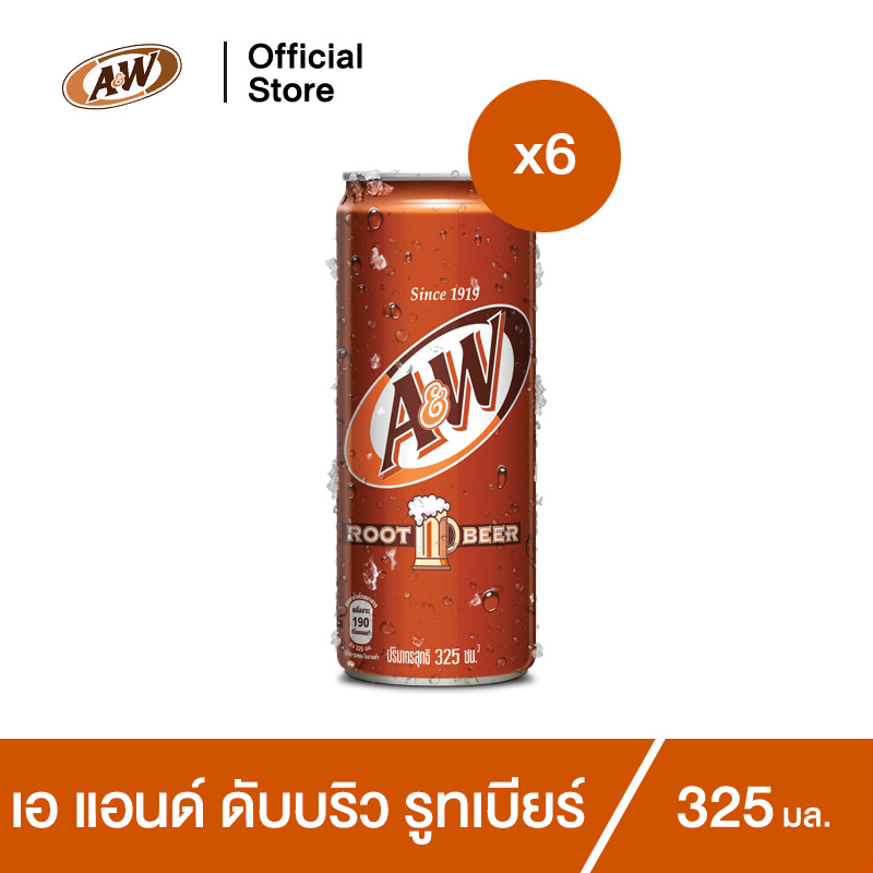 เอ แอนด์ ดับบลิว น้ำอัดลม กลิ่นรูทเบียร์ 325 มล. 6 กระป๋อง