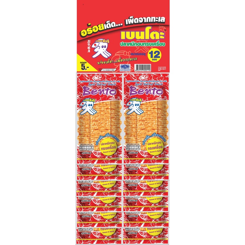 [ขายดี] Bento เบนโตะ ปลาหมึกอบ 4 กรัม แพ็ค 12 (เลือกรสได้)-ปรุงรส
