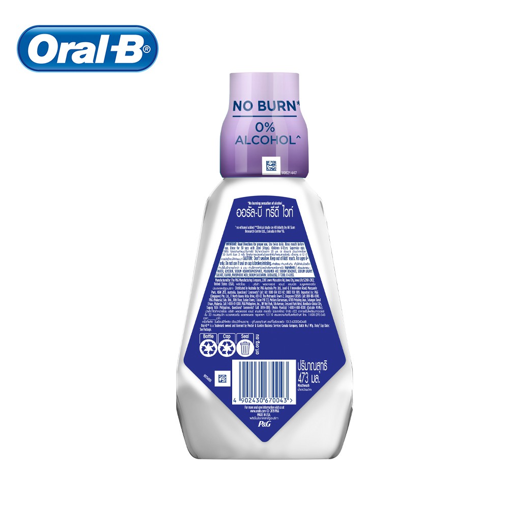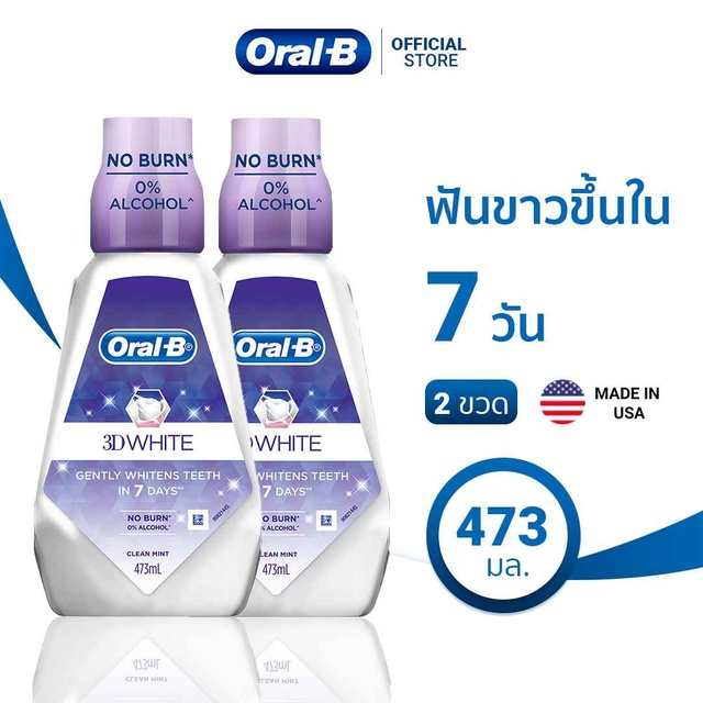 [แพ็คสุดคุ้ม] Oral-B ออรัลบี น้ำยาบ้วนปาก ทรีดีไวท์ 473 มล. 2 ขวด ฟันขาวขึ้นอย่างเป็นธรรมชาติใน 7 วัน