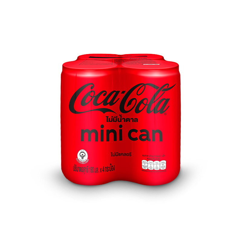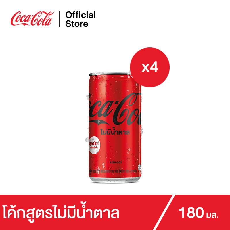 โค้ก น้ำอัดลม สูตรไม่มีน้ำตาล 180 มล. 4 กระป๋อง