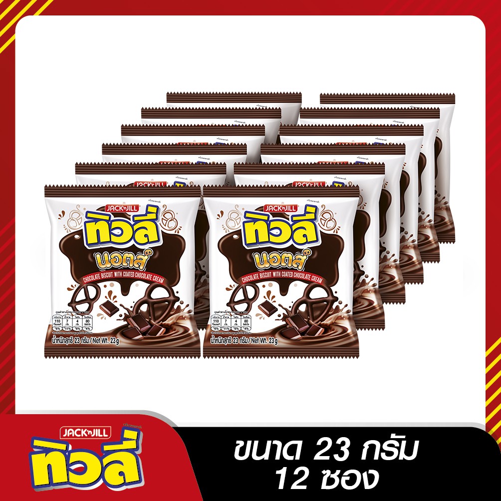 TIVOLI ทิวลี่ น็อตส์ บิสกิตรสช๊อคโกแลตเคลือบครีมรสช็อกโกแลต 23ก. x 12 ซอง