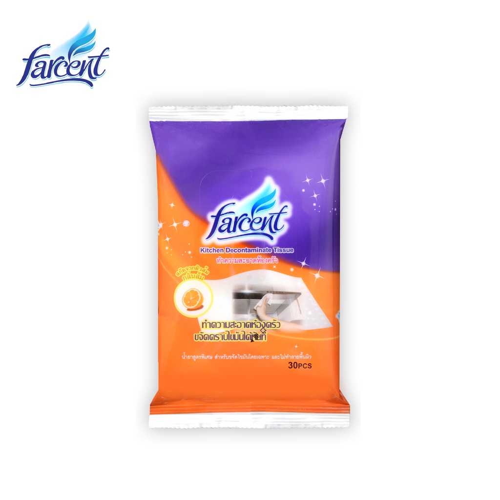 Farcent ผ้าเช็ดอุปกรณ์ในครัว 30 แผ่น กลิ่นส้ม