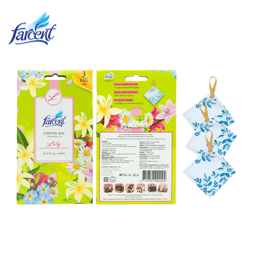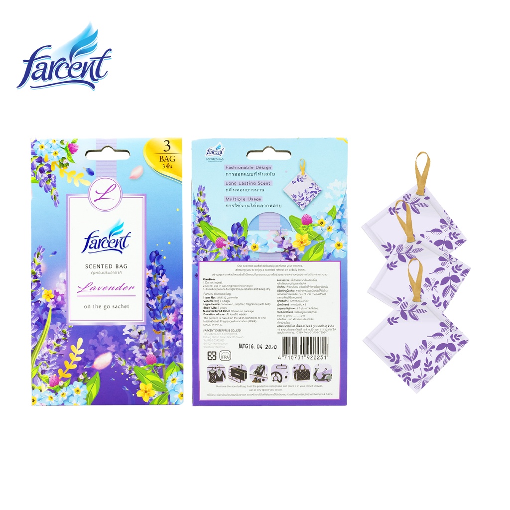 Farcent ถุงหอมปรับอากาศ 10ก. บรรจุ 3 ชิ้น (เลือกกลิ่นได้)