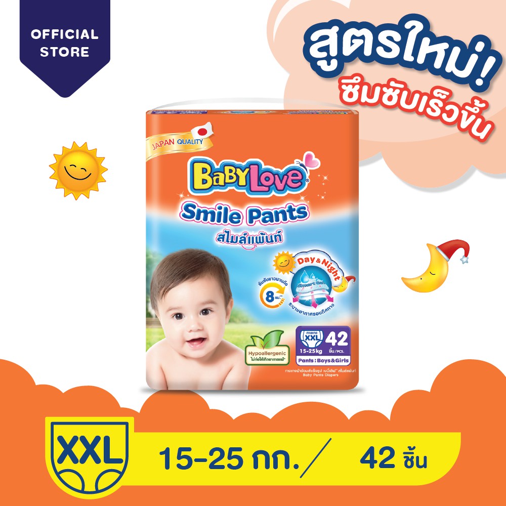 [โฉมใหม่] Babylove Smile Pants กางเกงผ้าอ้อมเด็ก เบบี้เลิฟ สไมล์แพ้นส์ ขนาดเมก้า (เลือกไซส์ได้)