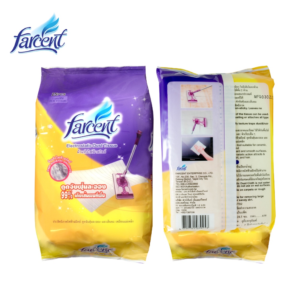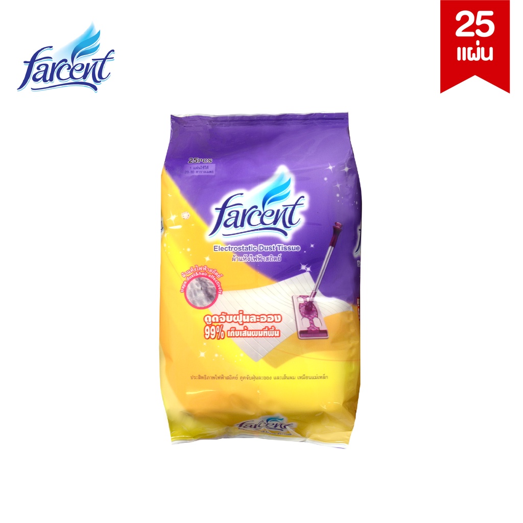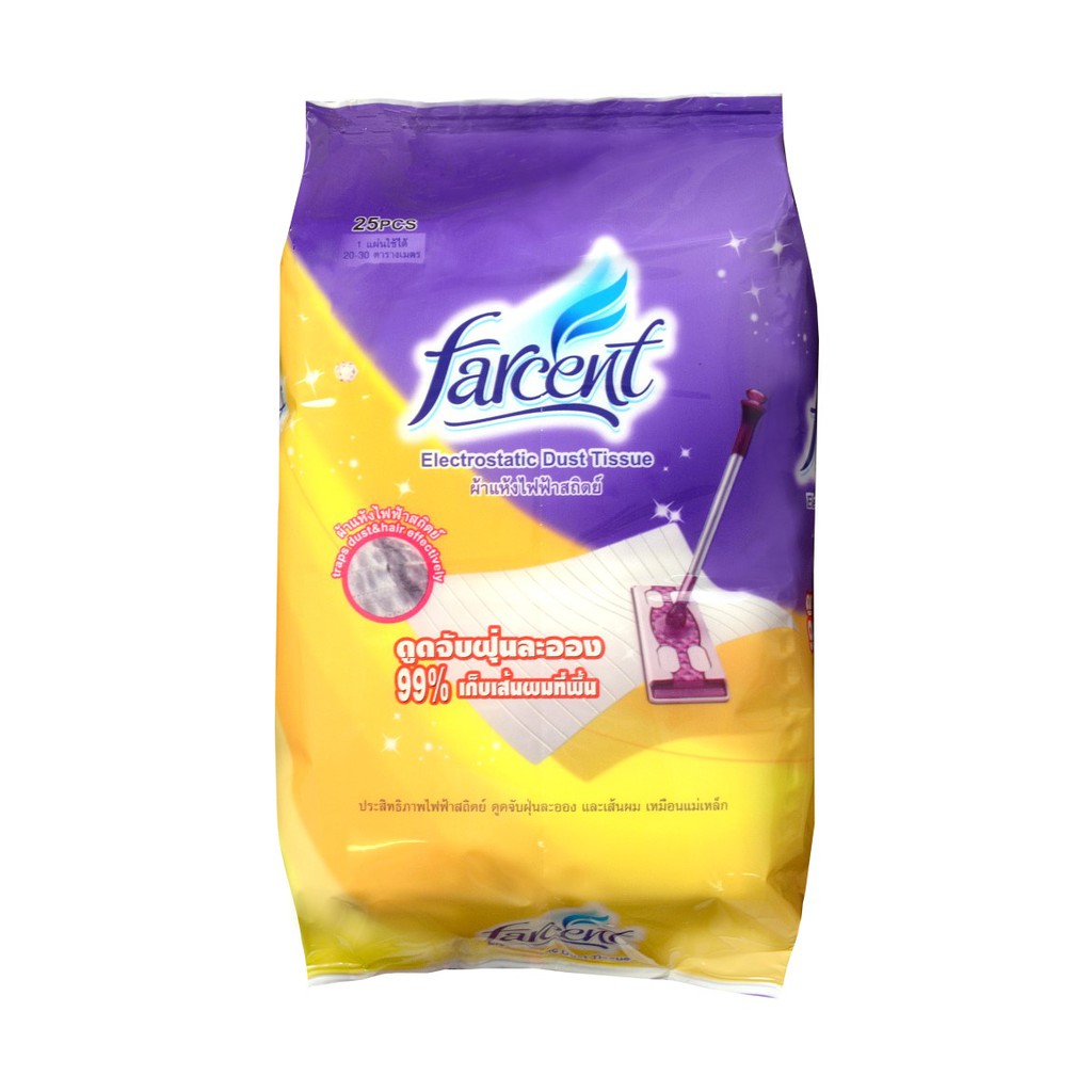 Farcent รีฟิลไม้ถูพื้นไฟฟ้าสถิตย์ชนิดแห้ง 25 แผ่น ผ้าเช็ดทำความสะอาด