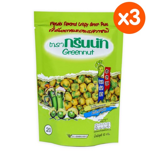 Greennut กรีนนัทถั่วลันเตาอบกรอบรสวาซาบิ 62กรัม (3ซอง)