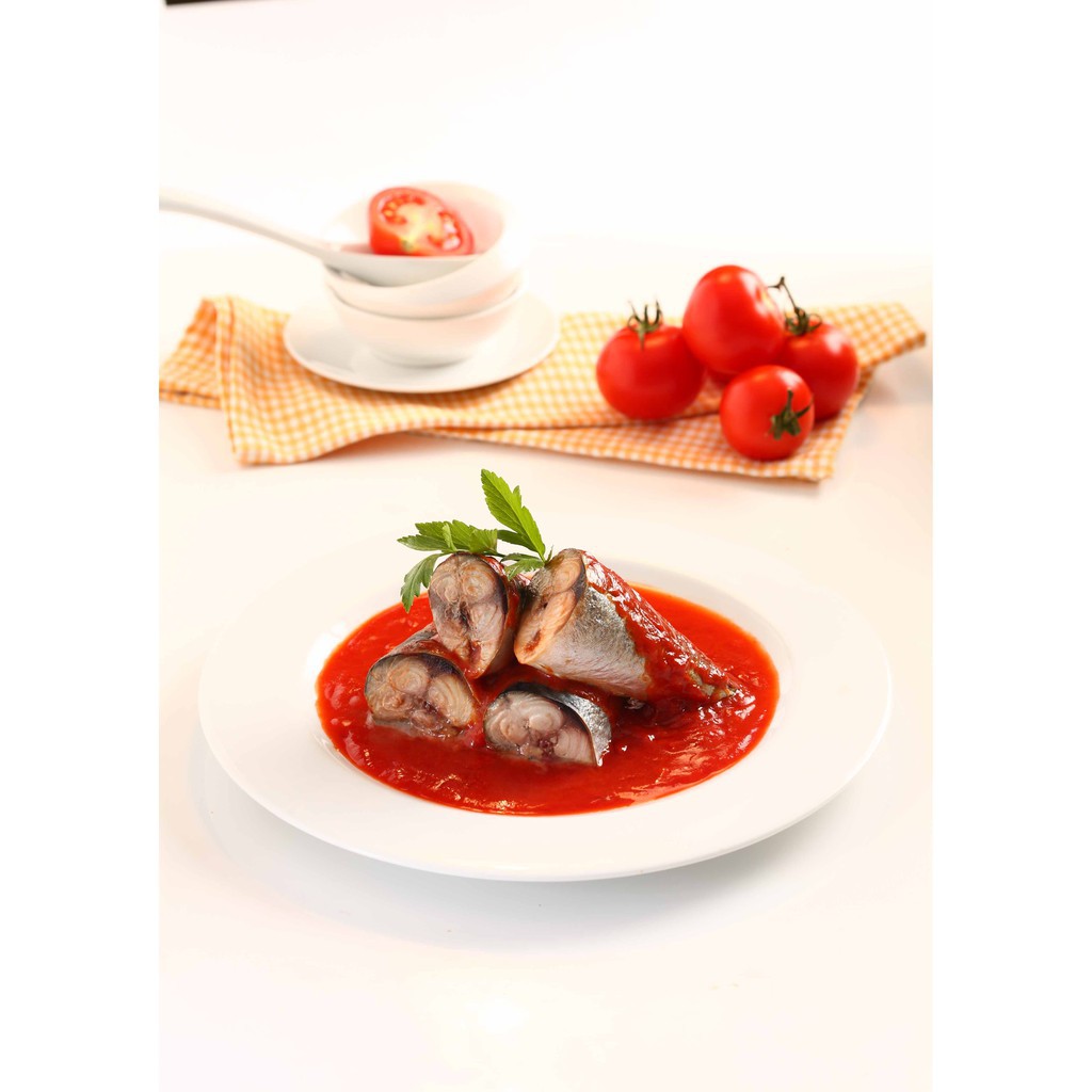 [ขายดี] ปุ้มปุ้ย ปลาแมคเคอเรลในซอสมะเขือเทศรสเข้มข้น 155 กรัม แพ็ค 10 กระป๋อง