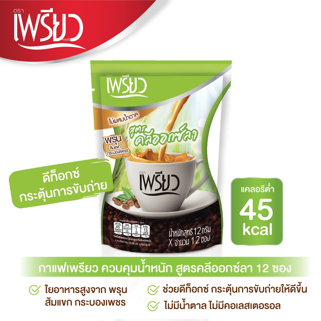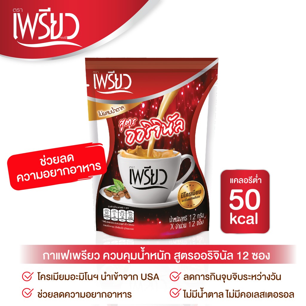 Preaw กาแฟเพรียว 12 กรัม แพ็ค 12 ซอง (เลือกสูตรได้)