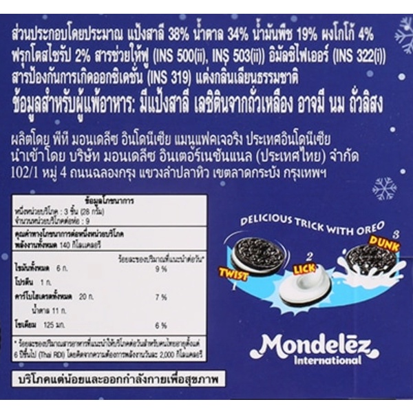 Oreo Chocolate โอรีโอ คุกกี้แซนวิชสอดไส้ครีม รสวานิลลา 248.4 กรัม (27.6gx9)