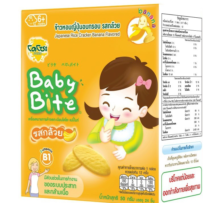 Dozo Baby Bite Banana โดโซะ เบบี้ไบท์ รสกล้วย 50 ก.บรรจุ 24 ชิ้น