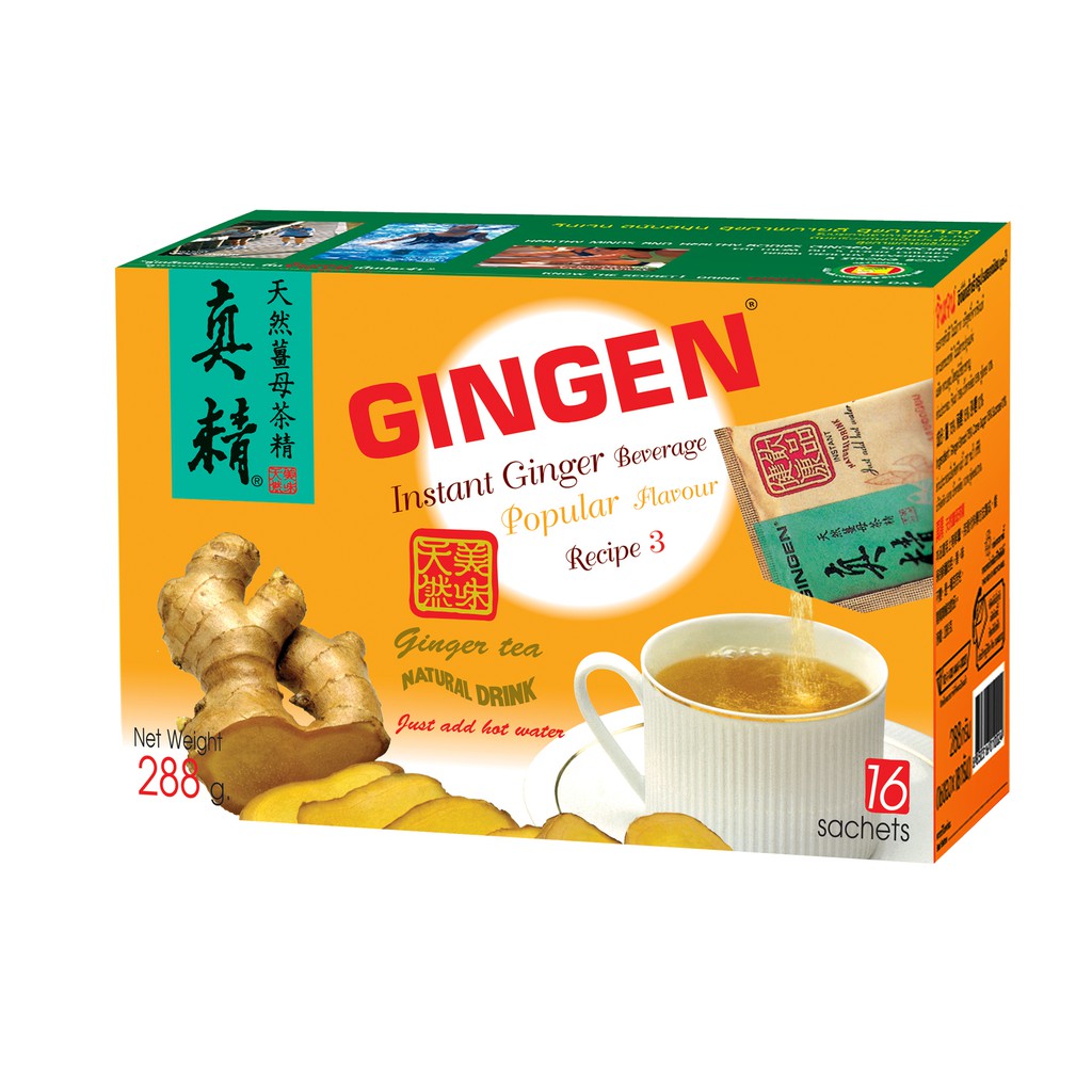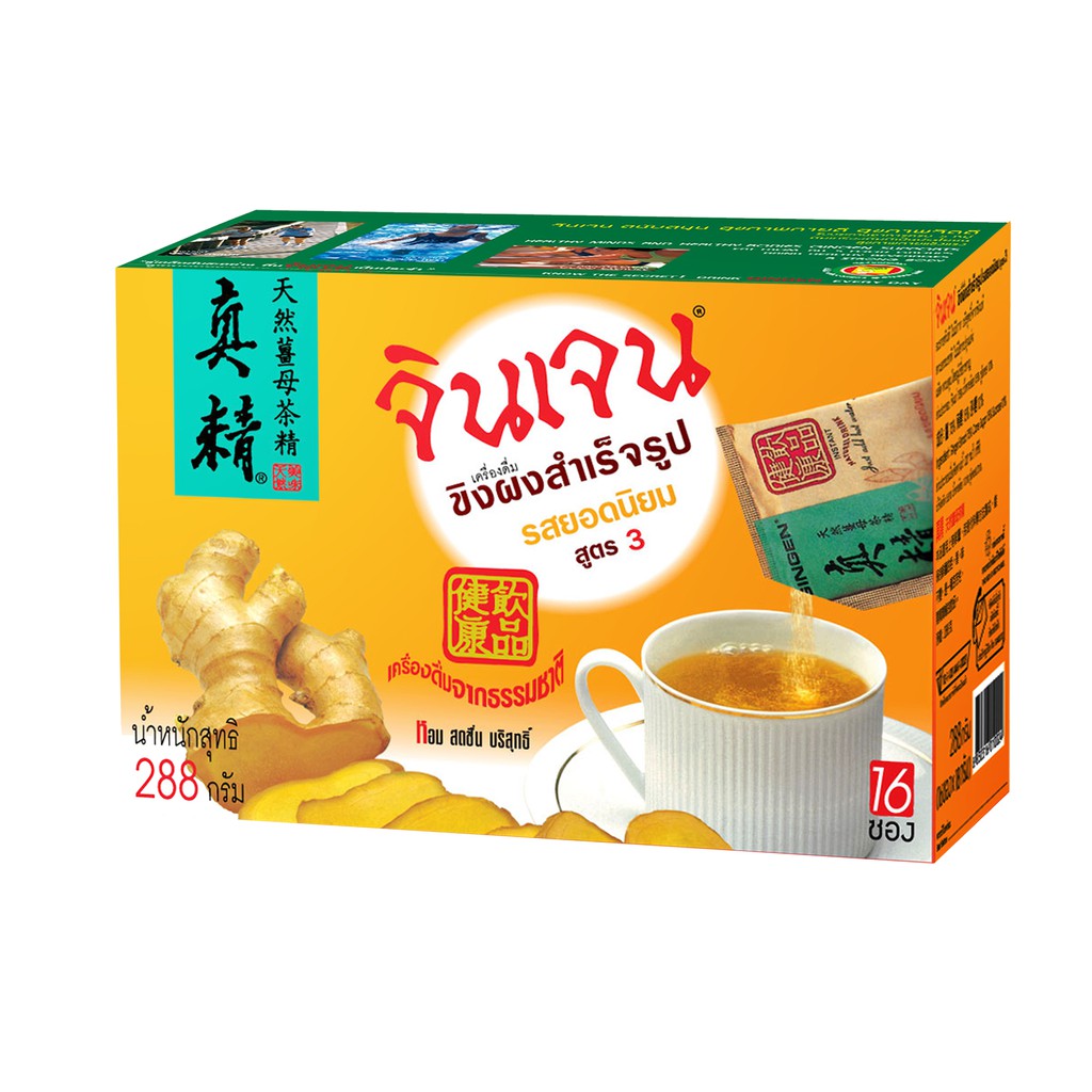 จินเจน เครื่องดื่มขิงผงสำเร็จรูปรสยอดนิยม สูตร 3 ขนาด288 กรัม (16ซอง X 18 กรัม)