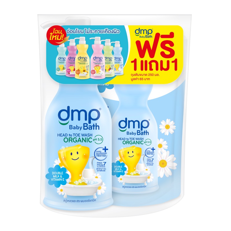 (1แถม1) DMP ดีเอ็มพี สบู่เหลวอาบน้ำและสระผมออร์แกนิค ขนาด 480 มล. แถมฟรีรีฟิล ถุงเติม 250 มล.(เลือกสูตรได้) (ขายดี)