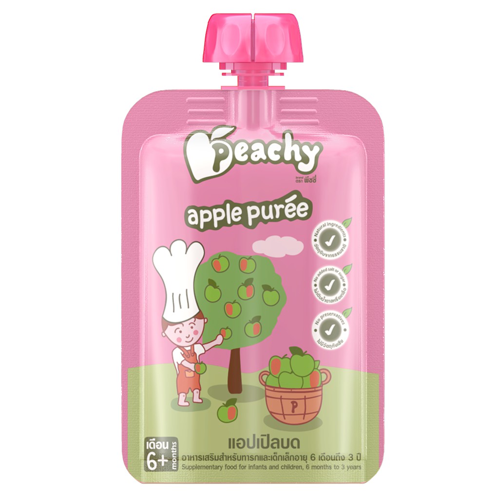 [ซื้อ 3ชิ้นลด10%] Peachy แอปเปิ้ลบด 100% สำหรับเด็กพีชชี่ 1 ถุง (R8)100g.
