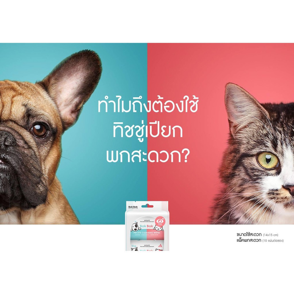 Bok Bok ทิชชู่เปียกพกพา เช็ดหน้าและรอบตา ใช้ได้ทั้งหมาแมว 30 แผ่น