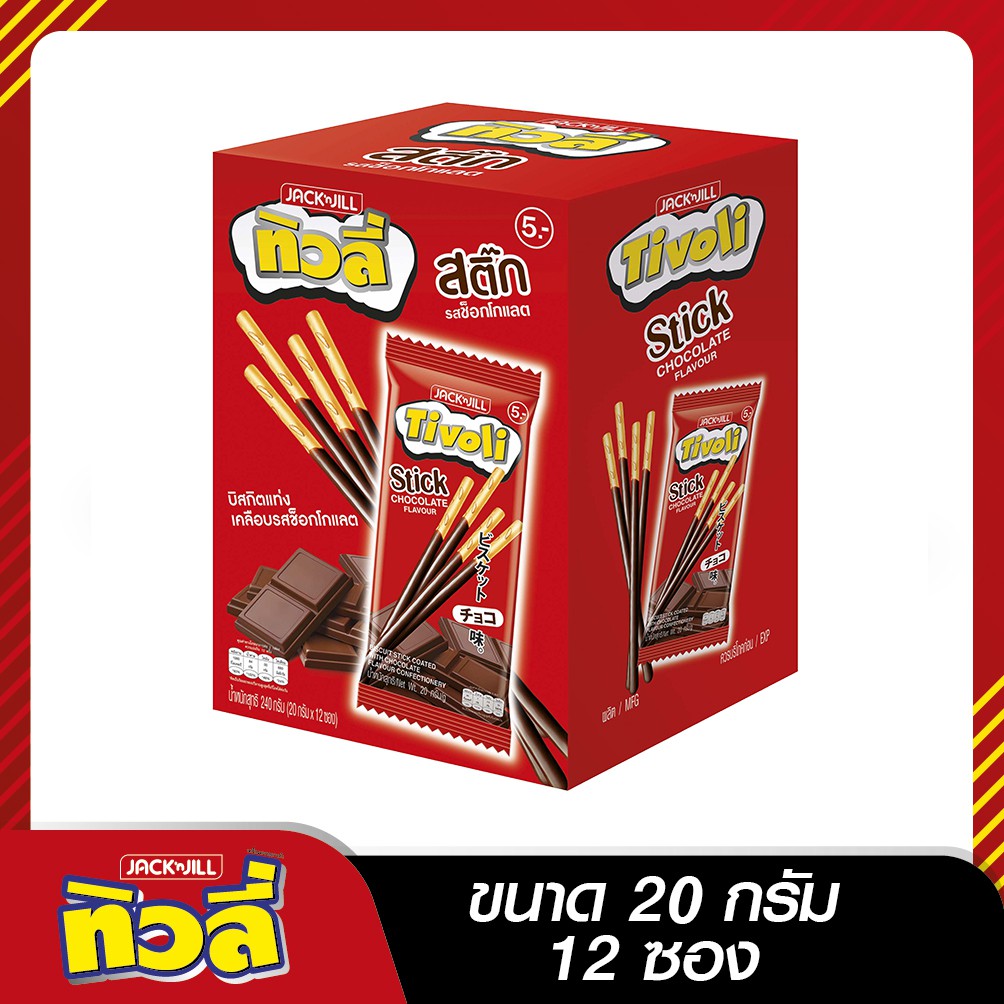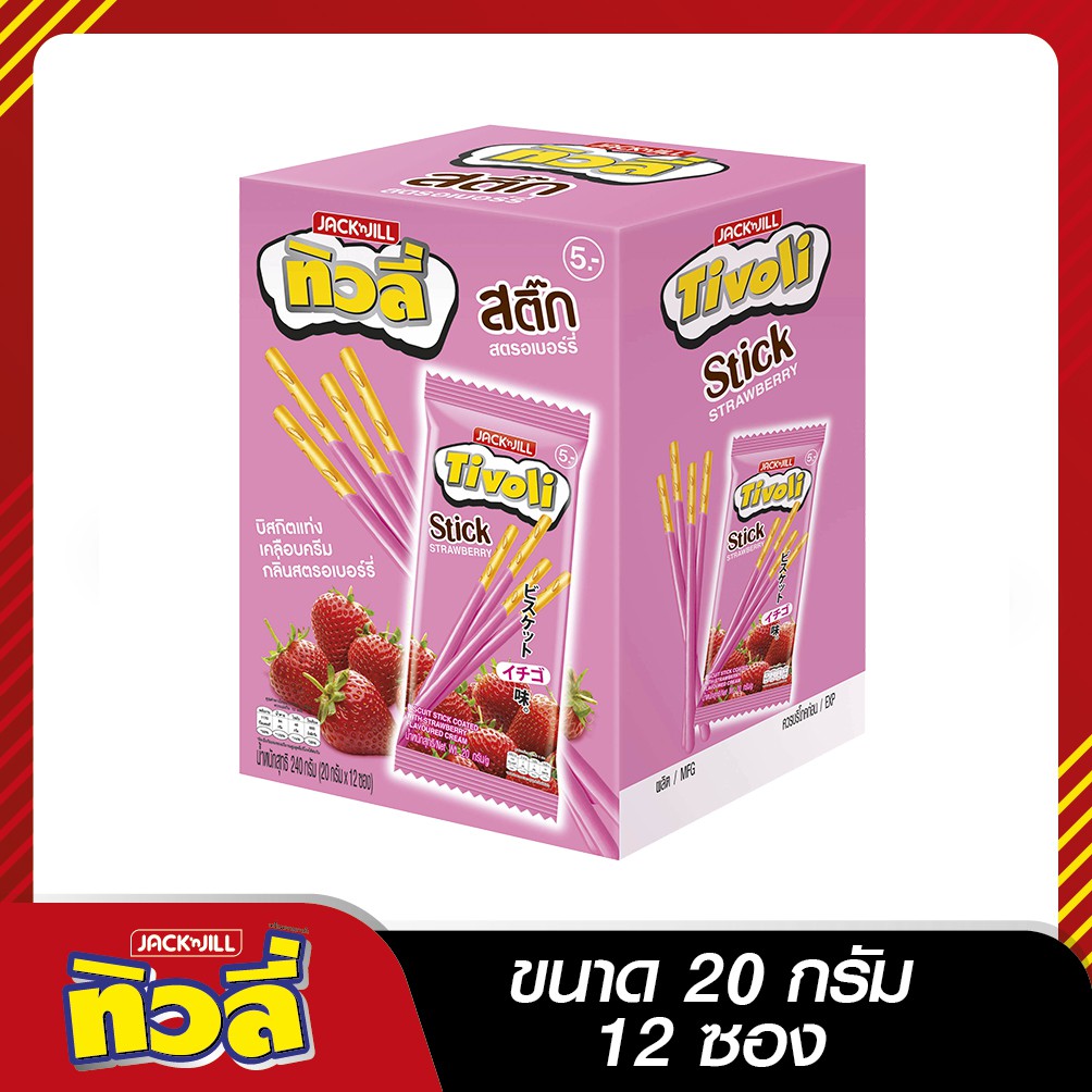 TIVOLI ทิวลี่สติ๊ก บิสกิตแท่งเคลือบครีม 20ก. x 12 ซอง (เลือกรสได้)