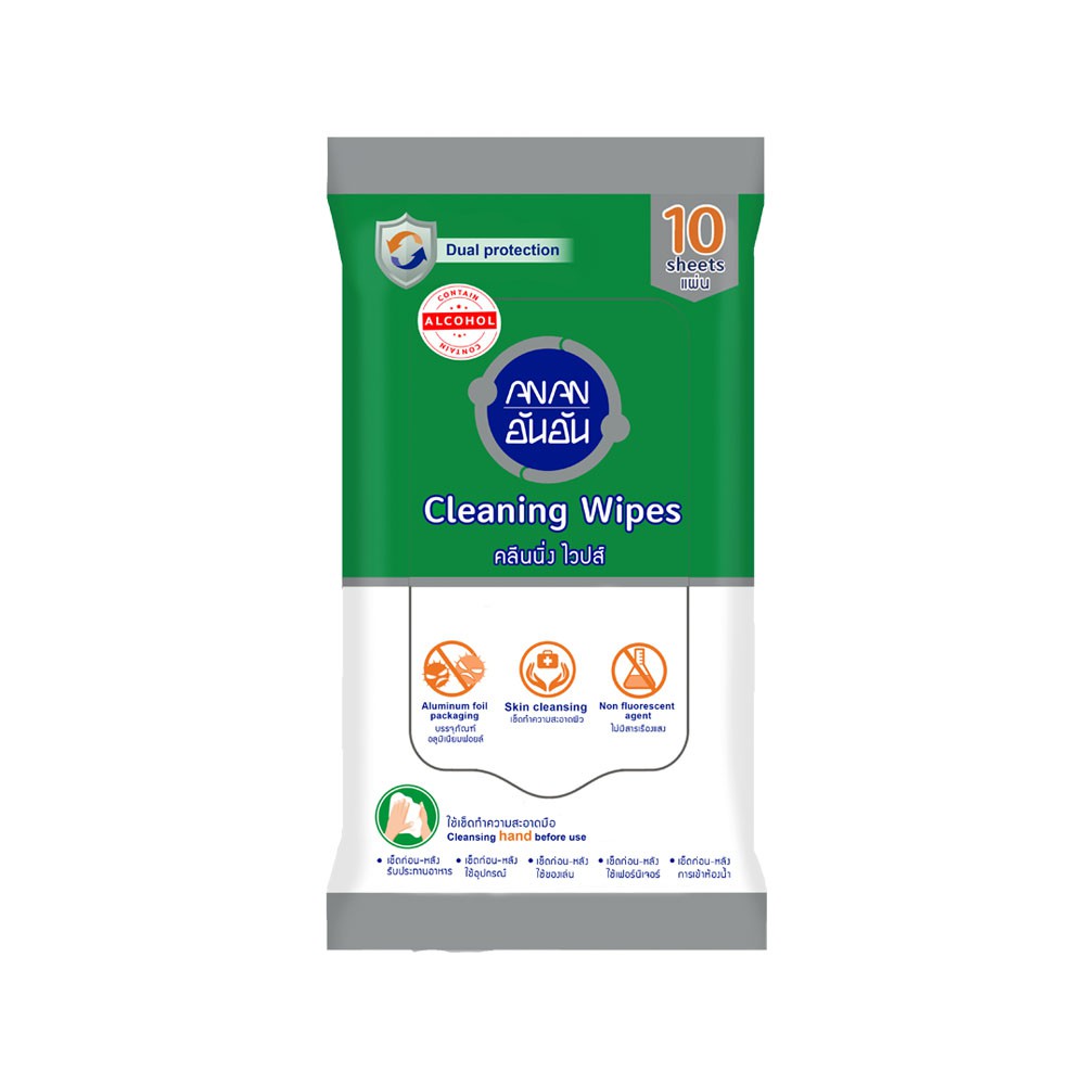 ANAN อันอัน ผ้าเช็คทำความสะอาดผสมแอลกอฮอล์ 10 แผ่น