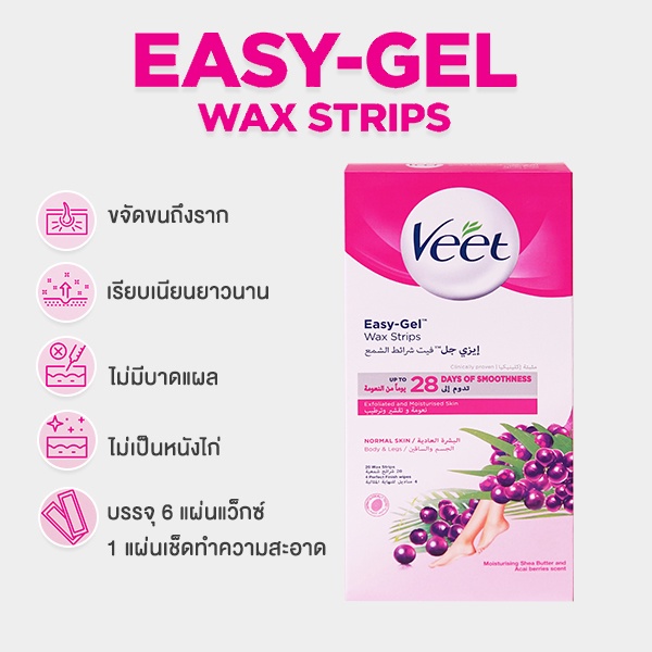 Veet วีท แว็กซ์สตริปส์ 6 แผ่น + 1 แผ่นทำความสะอาด เพอร์เฟคท์ ฟินิช ไวฟ์