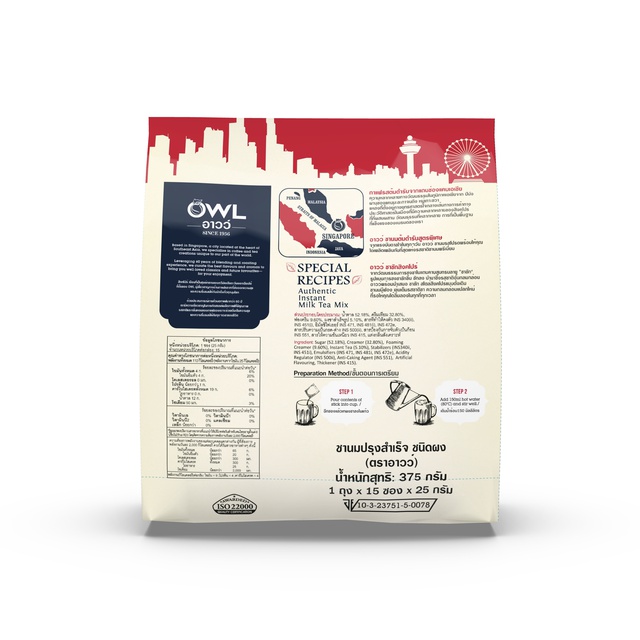 OWL อาวว์ ชาชัก สิงคโปร์ มิลค์ที (ชานมปรุงสำเร็จ) 375กรัม