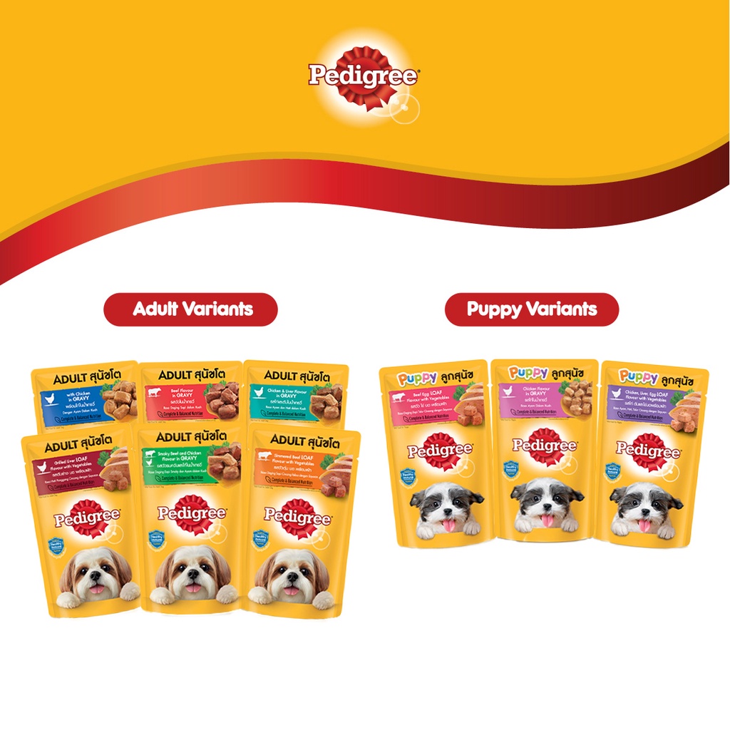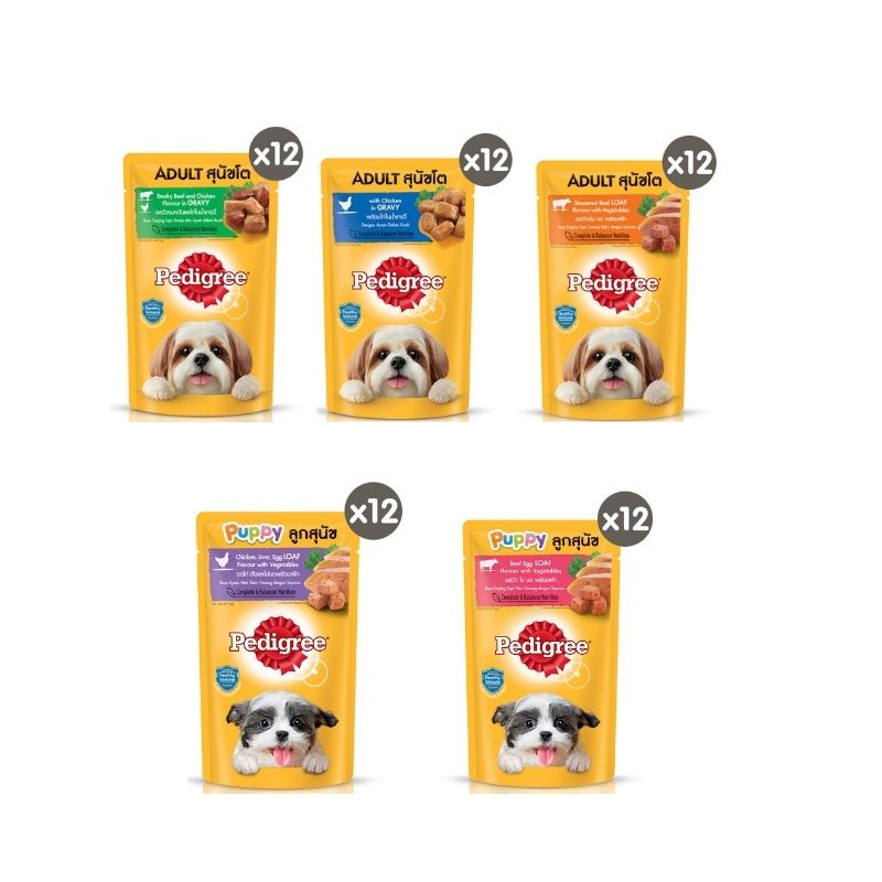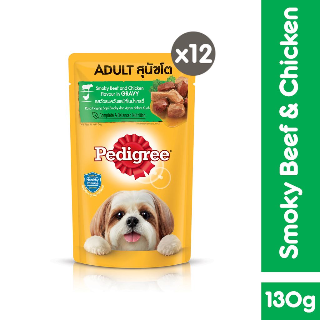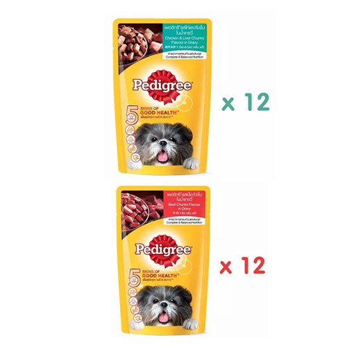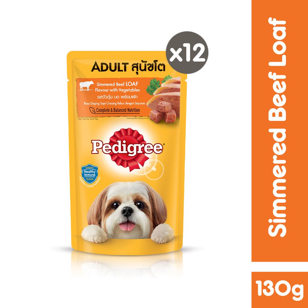 เพดดิกรี อาหารสุนัขชนิดเปียก แบบเพาช์ 130กรัม 1 ซอง x12
