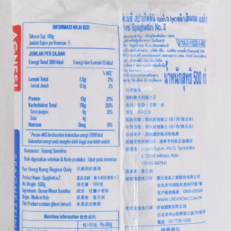 Agnesi แอคเนซี พาสต้าเส้นตรง ขนาด 500กรัม (เลือกเส้นได้)