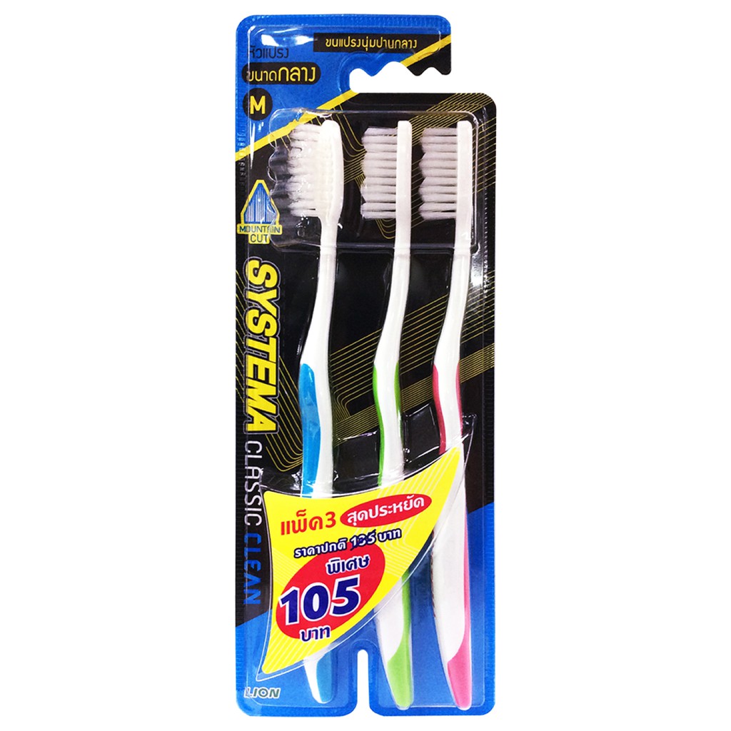 Systema ซิสเท็มมา แปรงสีฟัน คลาสสิกคลีน แพ็ค3 (เลือกไซส์ได้):Size L คละสี