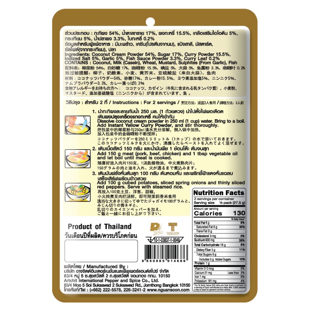 ง่วนสูน ตรามือที่1 เครื่องแกงกะหรี่กึ่งสำเร็จรูป 55g