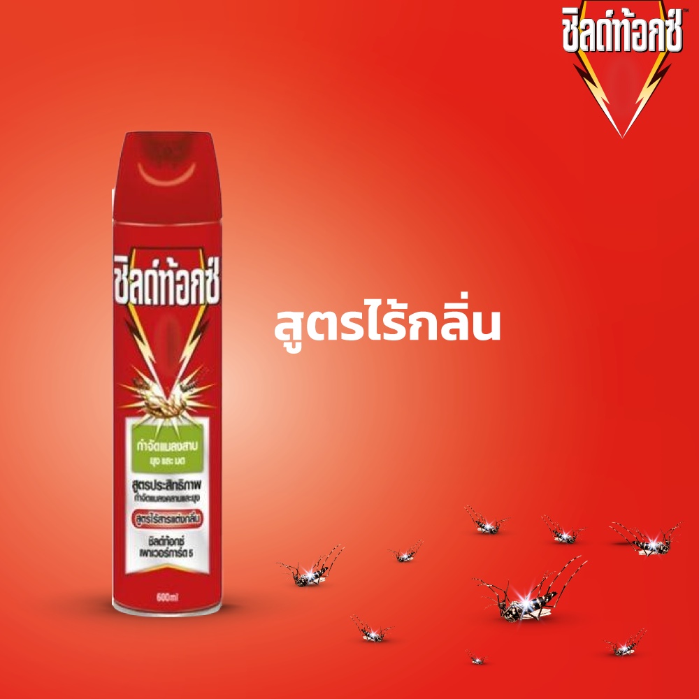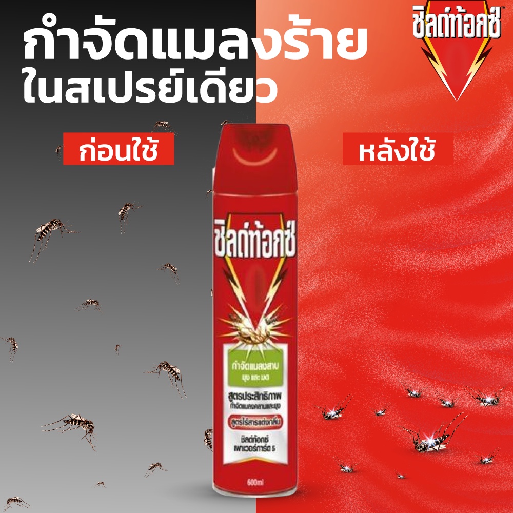 Shieldtox เพาเวอร์การ์ด5 ไร้กลิ่น สเปรย์กำจัดยุง,มด,แมลง, และแมลงสาบ ขนาด 600 มล.