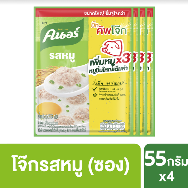Knorr คนอร์ บิ๊กคัพโจ๊ก ชนิดซอง รสหมู 50 กรัม [x4]