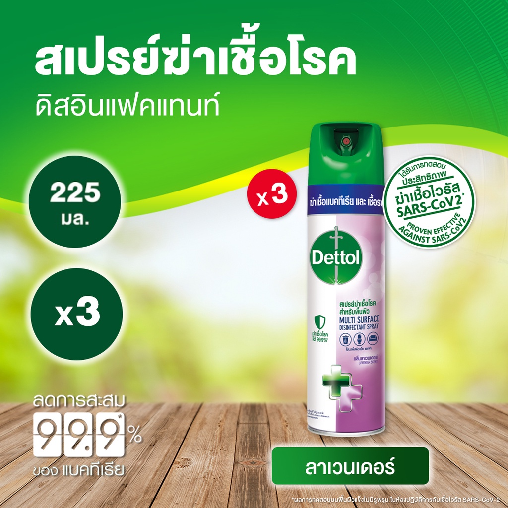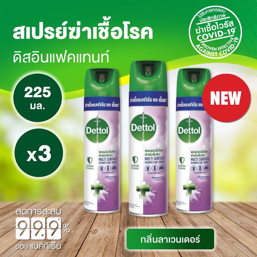 Dettol เดทตอล ดิสอินเฟคแทนท์ สเปรย์ กลิ่น ลาเวนเดอร์ 225 มล. X 3 ขวด