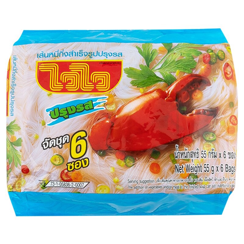 [ขายดี] Waiwai ไวไว เส้นหมี่กึ่งสำเร็จรูป 55 กรัม แพ็ค 6 ซอง (เลือกรสได้)