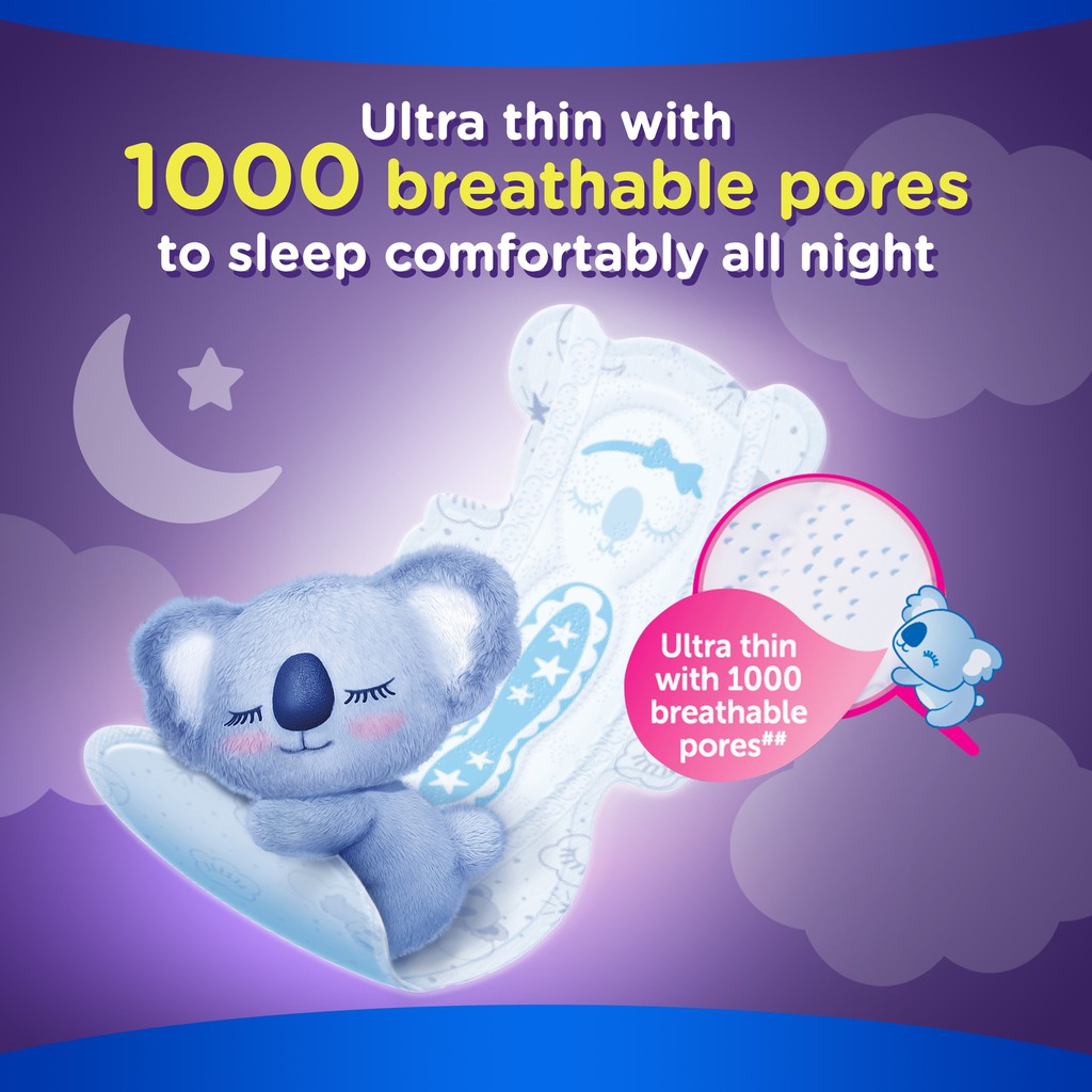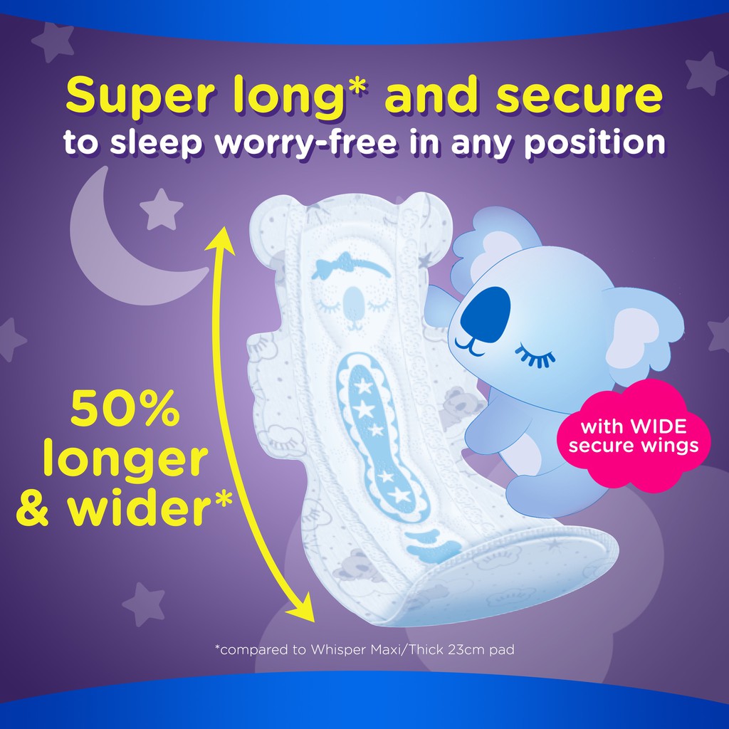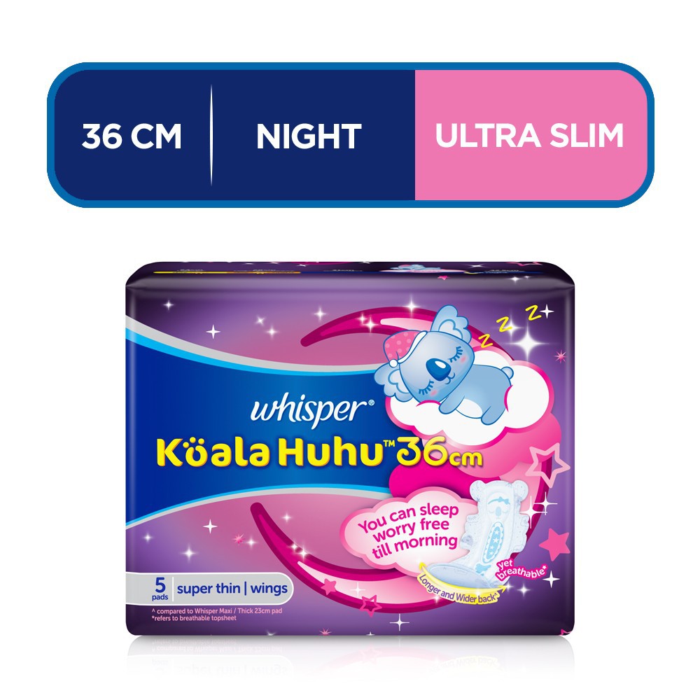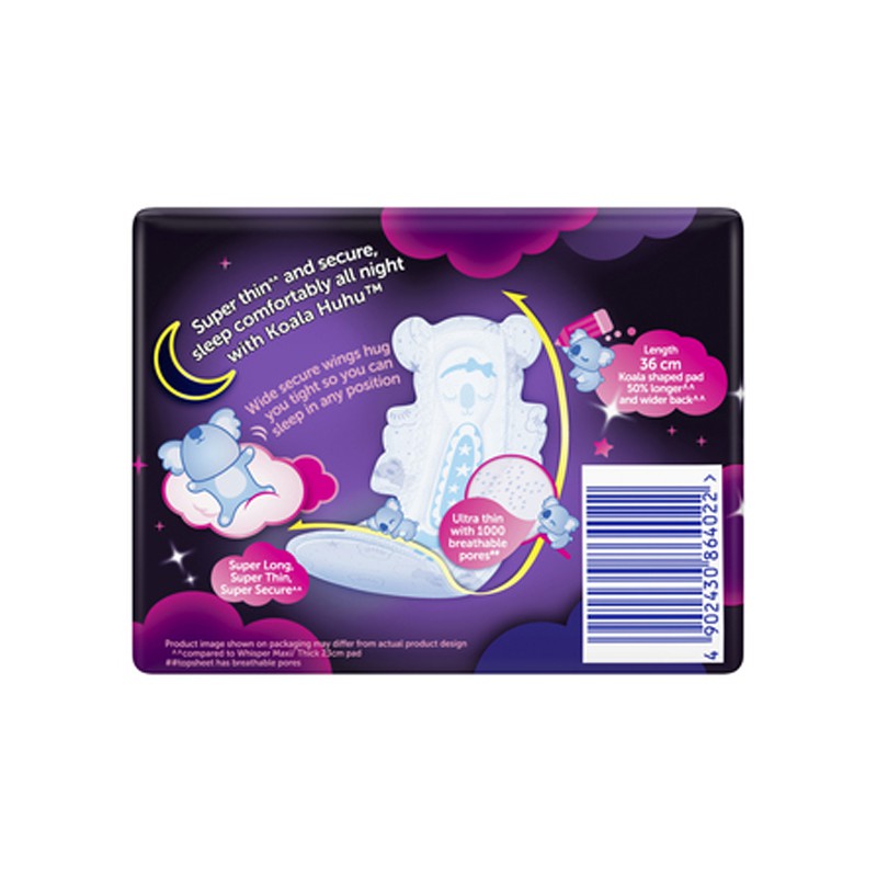 Whisper Koala Huhu วิสเปอร์ โคอาล่า ฮูฮู 36 ซม. สำหรับกลางคืน บางพิเศษพร้อมปีก ผ้าอนามั ย บรรจุ 5 ชิ้น