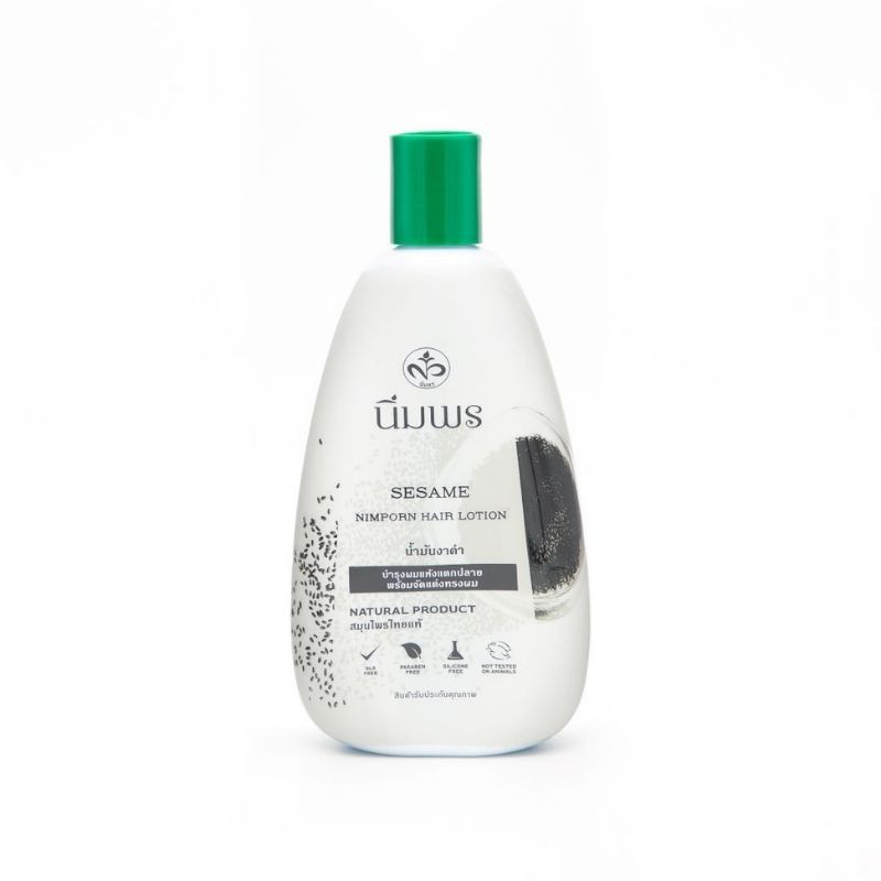 Nimporn Hair Lotion Sesame นิ่มพร น้ำมันเซ็ทผม สูตรงาดำ (เลือกขนาด)