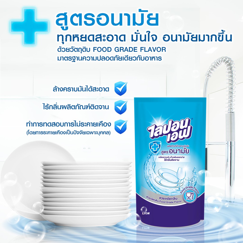 Lipon F น้ำยาล้างจาน ไลปอนเอฟ ถุงเติม 550 ml สูตรอนามัย