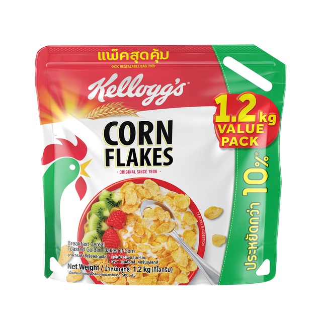 Kellogg's เคลล็อกส์ คอร์นเฟลกส์ Corn Flakes Breakfast Cereal Super Saver Pack 1.2 kg