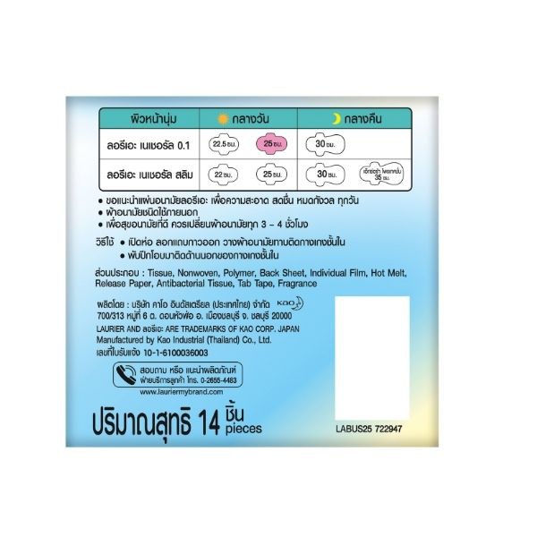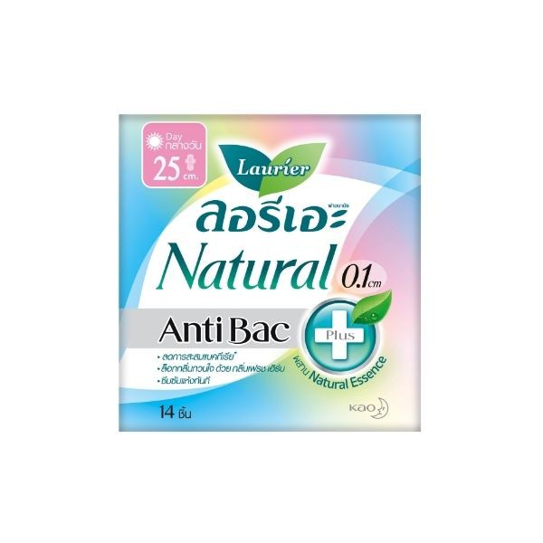 Laurier Natural Anti-Bac ผ้าอนามัยลอรีเอะ เนเชอรัล แอนตี้แบค บางเฉียบ 0.1 (เลือกขนาด)