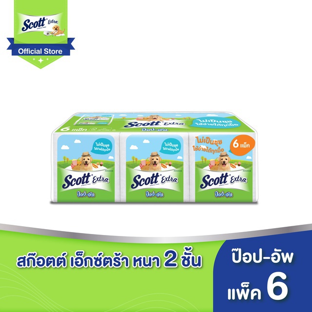 Scott Extra สก๊อตต์® เอ็กซ์ตร้า ป๊อป-อัพ กระดาษชำระ (6 ชิ้น) 86 แผ่น x 6 ห่อ