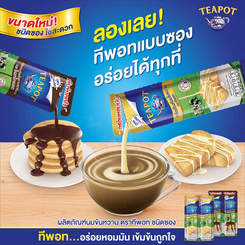 Teapot ผลิตภัณฑ์นมข้นหวาน ตราทีพอท ชนิดซอง 50 กรัม แพ็ค 12 (เลือกสูตรได้)